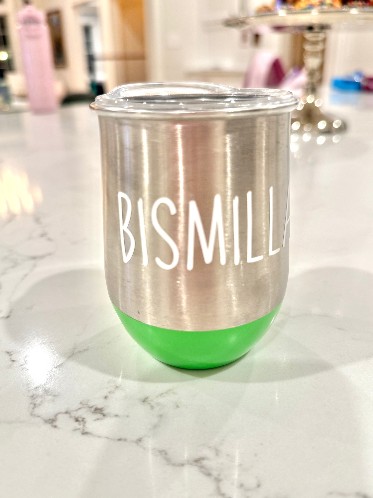 Cute kids cup reminding kids to say Bismillah before the first sip .